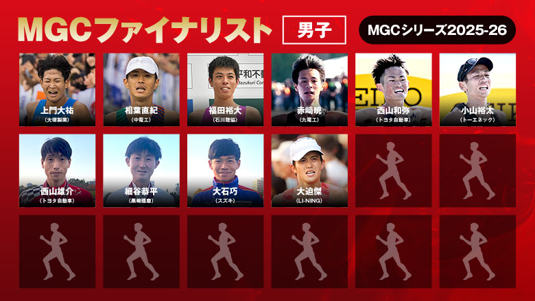 2027年秋開催予定のロサンゼルス2028オリンピック競技大会日本代表選手選考競技会「MGC」の参加資格を獲得した選手の一覧です。※2025年12月15現在◆MGCとは